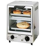 Product OverviewsFrom Sanyo, this is the Super Toasty oven, a two-tiered oven that takes up minimal space yet offers enough room for toasting bagels, hamburger buns or open-faced sandwiches. The Super Toasty toaster lets you brown bagels perfectly every time: placed cut-side down, the bagels' thicker tops warm from the top while the cut sides crisp and brown more deeply. Use the top rack for melting cheese on open-faced sandwiches or broiling the tops of mini pizzas. Use the bottom rack for reheating or keeping food warm. For timing your foods, the Super Toasty oven comes with a 15-minute bell and an auto shutoff. For easy access, the racks with metal trays slide out when the door is opened. The Sanyo toaster oven comes with a removable crumb tray and a cord storage holder.